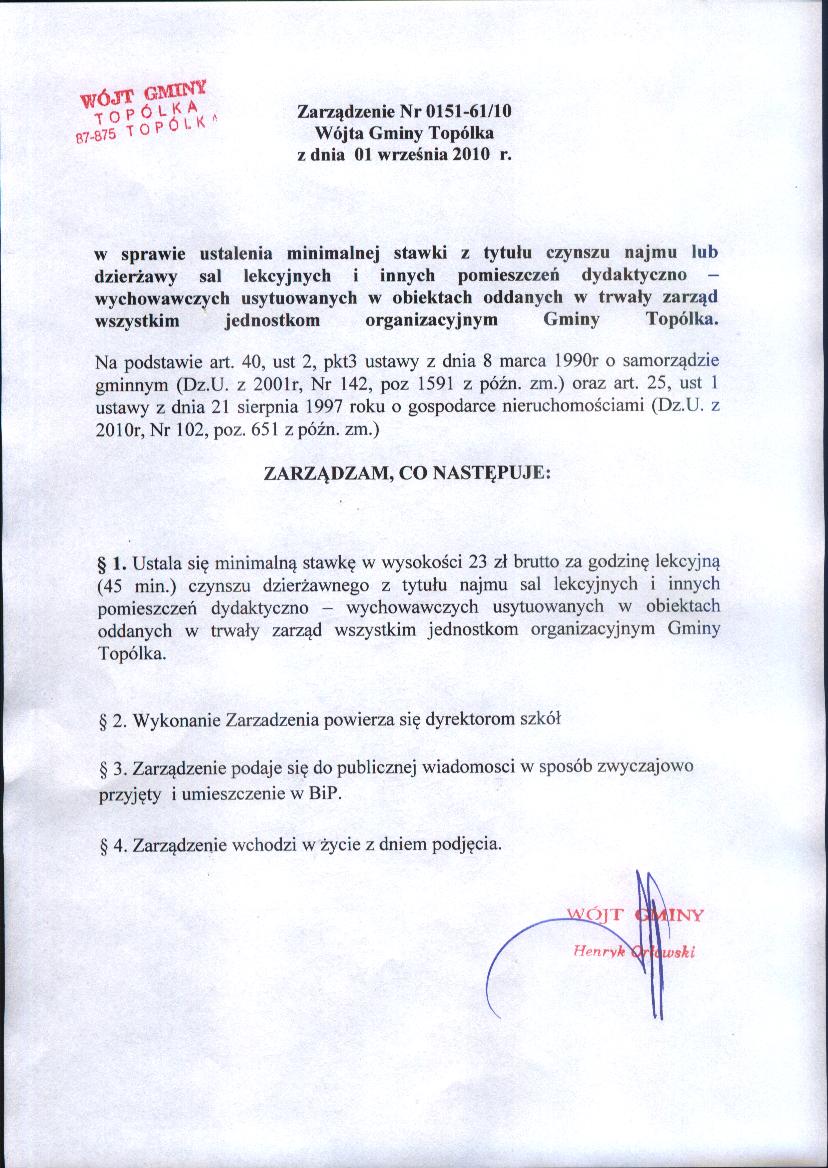 | Zarządzenie Nr0151-61/10 Wójta Gmint Topólka z 01 września 2010r. |